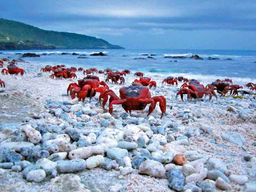 Einmal im Jahr kommt Christmas Island, die Weihnachtsinsel im Indischen Ozean, vollständig zum Stillstand: Nichts geht mehr, wenn 42 Millionen ihrer Bewohner aus dem Dschungel an den Strand ziehen. Straßen werden gesperrt, Tankstellen färben sich rot, und Schulen werden geschlossen. Sämtliche Unterkünfte sind belegt, meist mit Fotografen und ökologisch Interessierten, die sich ein einzigartiges Naturschauspiel nicht entgehen lassen wollen.
